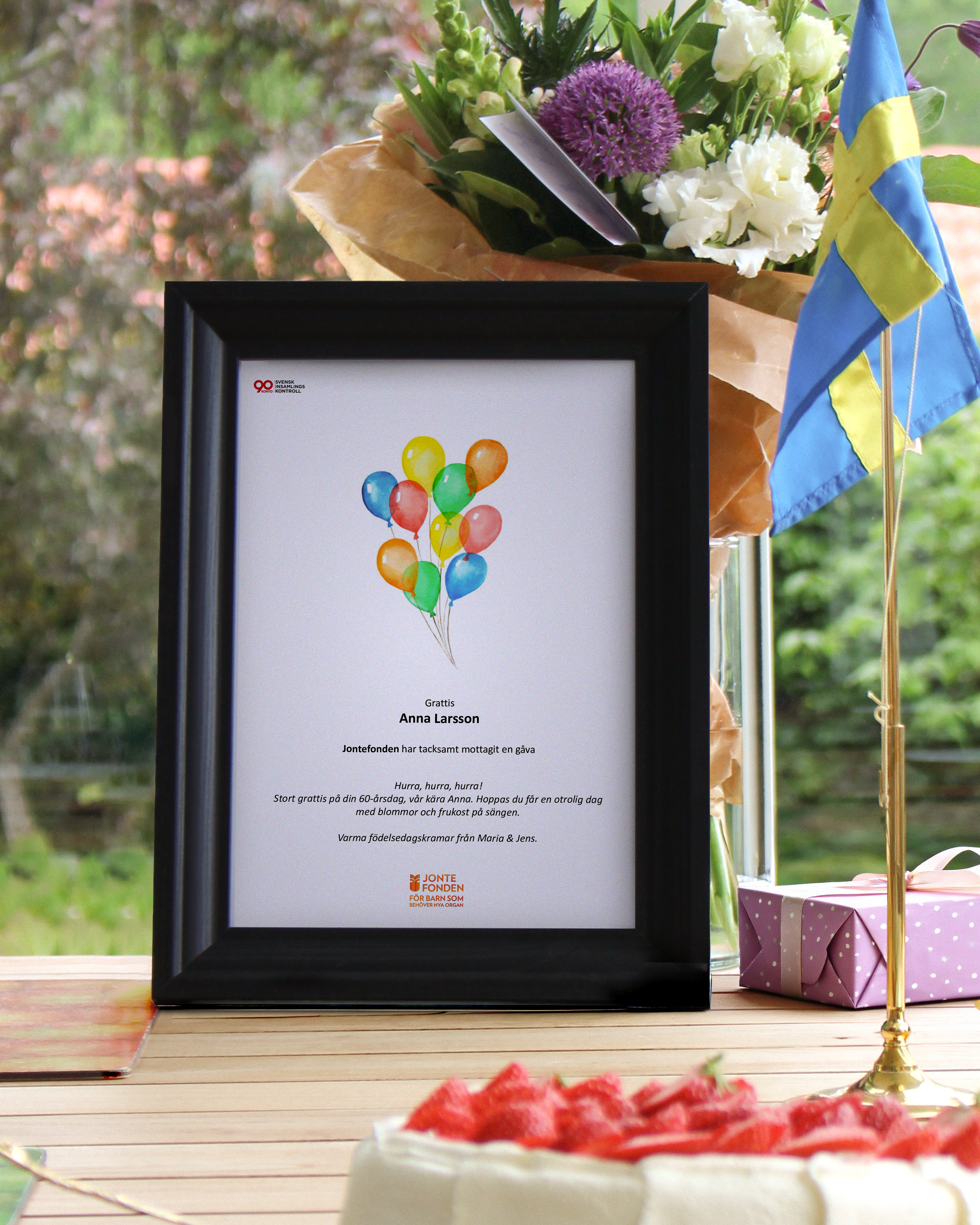 Du skĂ€nker en valfri summa till oss pĂ„ Jontefonden och fĂ„r en personlig PDF du sjĂ€lv kan skriva ut. Du kan ocksĂ„ vĂ€lja att vi postar ditt personliga brev till dig eller direkt till personen du vill hylla. Du behöver bara meddela vem som ska motta det personliga brevet och vart det ska skickas, vi fixar resten! đ§Ą